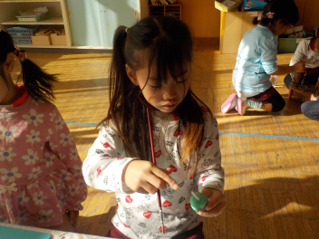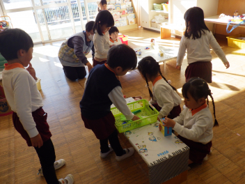 先生や友達とやり取りをしながら遊びを楽しむ ひよこ組frown