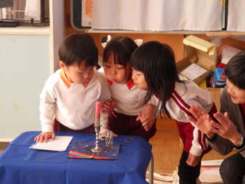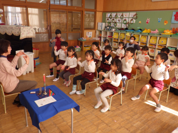おはなしの会の最後は、ろうそくの灯をそっと吹き消します。