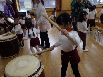 • 幼稚園特色化事業の1つ獅子舞演舞見学です