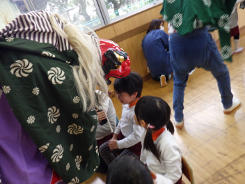 大きな獅子舞に子供たちから歓声が!!驚きで涙する子もいましたよfrown