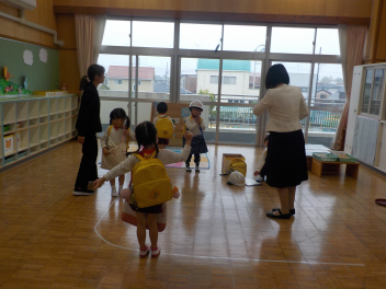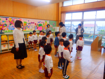 新入園児の子供たちも雨の降る中、お家の人と登園してきてくれましたwink
