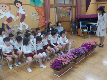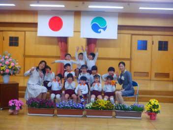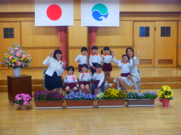 ひよこ組9名、うさぎ組9人、ぞう組14人の子供たちで幼稚園がスタートしましたfrown