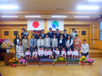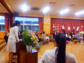 ぞう組うさぎ組の子供たちがお祝いのメッセージと歌を披露しましたsadお兄さん、お姉さんが歌う歌や言葉を笑顔で見ていた子供たちですfrown