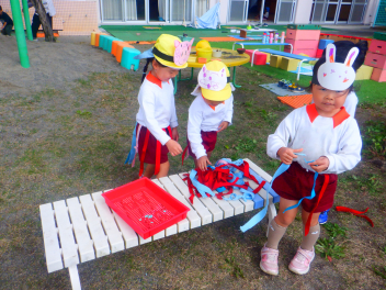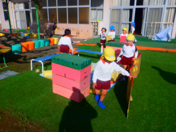 先生と遊びの中でどうすればもっと楽しくなるかな~を考えたり、遊びに人幼な道具を工夫したりすることで思考力も育まれていきますfrown