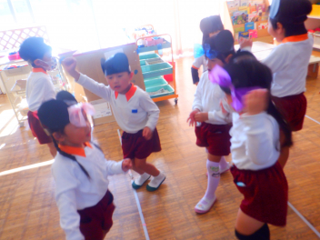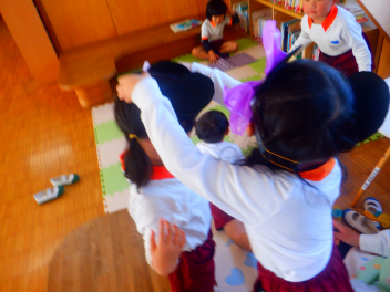 体を動かしながら友達とイメージの世界をいっぱい楽しんでいます