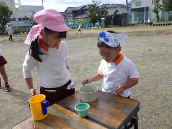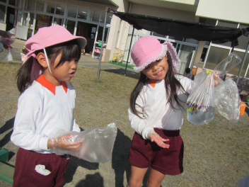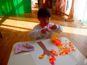 花びらを集めて匂いをかいでみたり、ごっこ遊びのお料理に使ってみたりする姿が見られましたよfrown