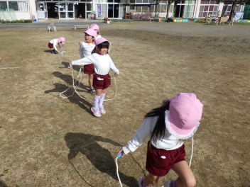 縄をよいしょって跳んでみたり、縄を自分でしばってみたりfrown体のいろんな部位を使って強くなっていますよ