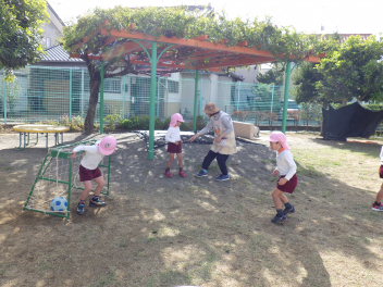 元気な声が聞こえてきましたよお芋になった先生をみんなの力で抜いていますwink