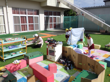 幼稚園では子供たちが自ら心を動かし、始めたごっこ遊びをとても大切にしています。