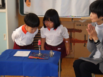 おはなしの世界が終わりのときには、ろうそくの灯りを消しますlaugh
