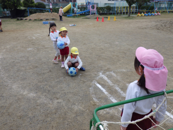 ひよこ組も王冠シールがほしくなってサッカーにチャレンジです