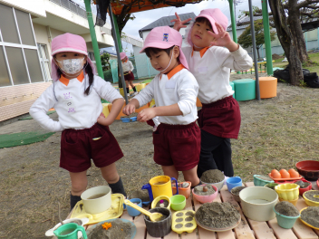 ままごとやお店屋さんごっこなどの遊びを通して、登場人物の気持ちを想像したり、友達と協力したり、ルールづくりを学ぶことで、社会で生きていくための資質・能力の基礎を自然と身についていきますfrown小学校以降の学ぶ力の大切な基礎となります。