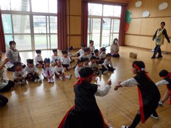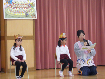 遊戯室ではうさぎ組、ぞう組の誕生会が始まりました