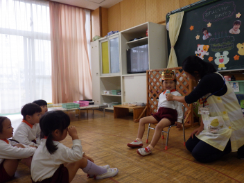 ひよこ組はクラスでの誕生会が始まりましたsad