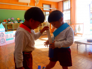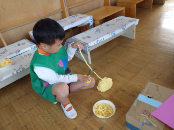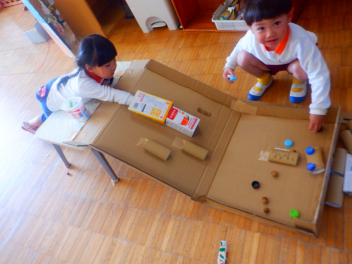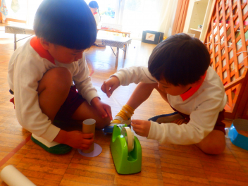 『使うかもしれないからここに置いておこう』の先生の声に『ボール2個でやろう!』と一人の子が言いました