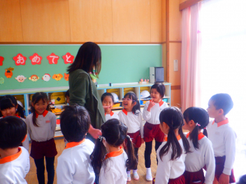 先生や友達とやり取りをしながら遊びを楽しむ ひよこ組frown