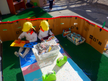 うさぎ組の子供たちがどんなことをして遊ぼうか準備していましたfrown