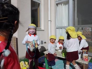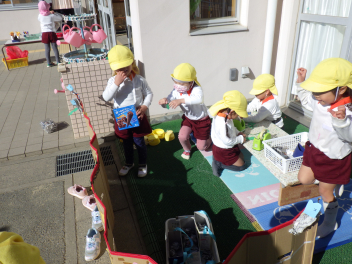 幼稚園内外の様々な環境に関わる中で、遊びや生活に必要な情報を取り入れ、役立てながら生活していけるよう、社会とのつながりを意識して大切にしていますlaugh