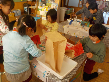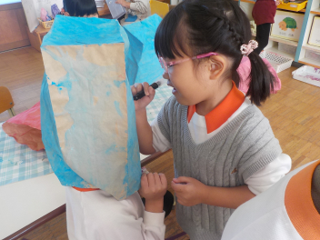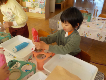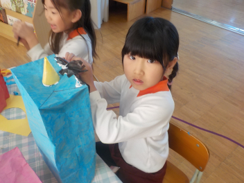 ぱくぱくお人形つくりを楽しむ、ひよこ組frown