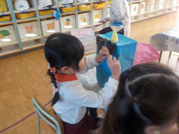 遊戯室ではうさぎ組、ぞう組の誕生会が始まりましたsad