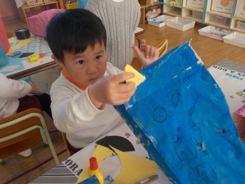 用意されている教材の中から自分で何を使おうか決め工夫してつけていますfrown