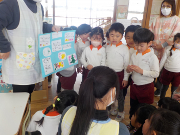 子供たちにわかりやすいように、イラストなどを使ってお話してくださり、子供たちは真剣に聞いたり、答えたりしました。