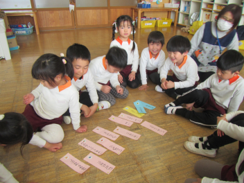 ぞう組のこどもたちが、うさぎ組の伝え対決を進めていく姿が見られましたfrown