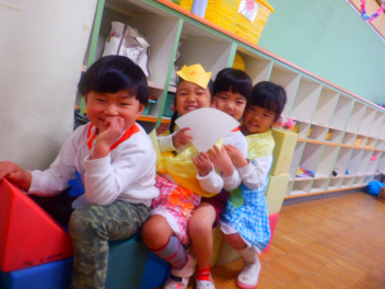 お雛さまやお内裏様になって歌を歌ったり、お雛様遊びを楽しんだりしていますfrown