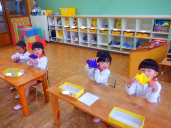 先生と一緒につくるうちに『もう覚えたよsad』と嬉しそうに折り進めていくこどもたち!