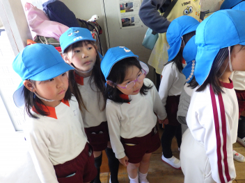 今日、教えてもらった傘のさし方、歩き方、道路の歩き方をお家の人ともやってみて身に付くことで、自信をもって小学校に通えるようになってきますね 。