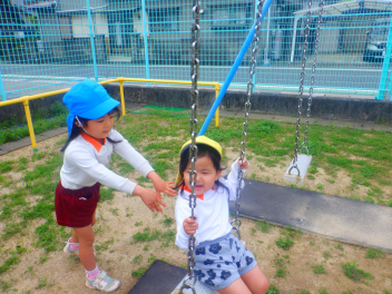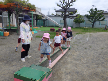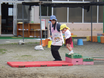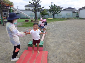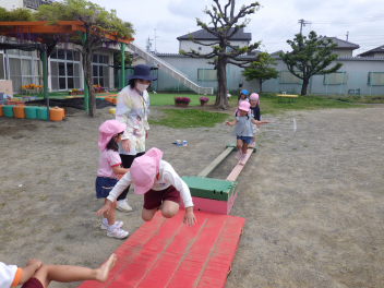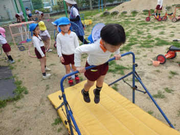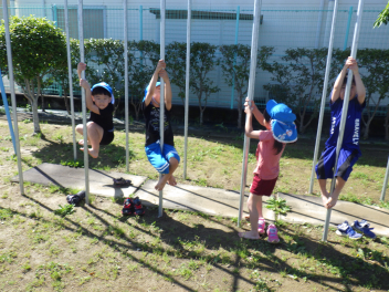 自分のやってみたい遊びを見付けたり友達の遊びも一緒にやってみたくなったり、先生に得意なこと見せたりしていますsad