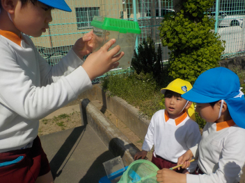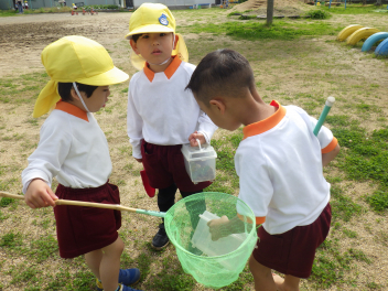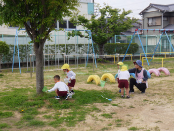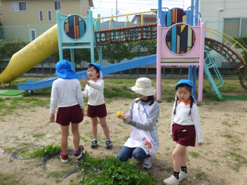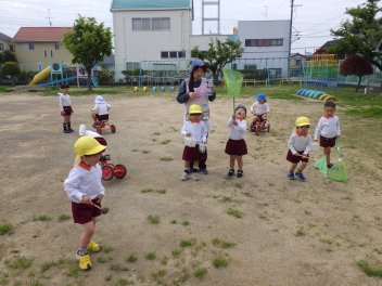 春の園庭はいろんな虫が遊びにきますfrown