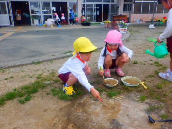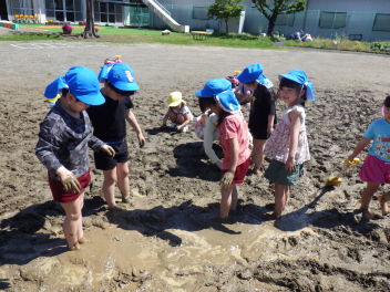 雨がたくさん降ったあとの園庭はとても楽しい泥んこ遊びができるのですwink