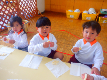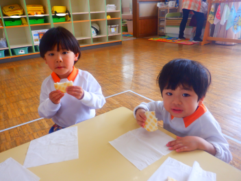 うさぎ組ひよこ組の修了式にぞう組の子供たちも“ひよこ組とうさぎ組の大きくなった姿”を見に来てくれましたfrown