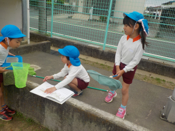 図鑑をもって調べていますよfrown