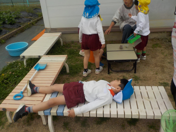 亀のお世話をしてくれる地域の方や幼稚園の草を取ってきれいにしてくれて、野菜の畑もつくってくれるシルバーさんに『ありがとう』を伝えたい!!