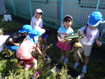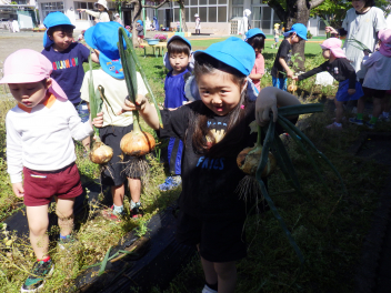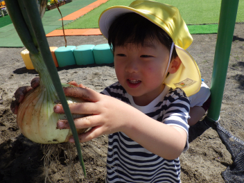 一緒に植えたうさぎ組にも声をかけて大きな玉ねぎをスポンと抜きましたwink