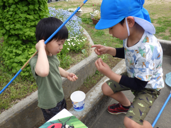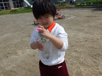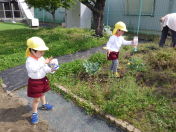 大きい組が野菜に水をあげている姿を見てやってみたくなりましたよfrown