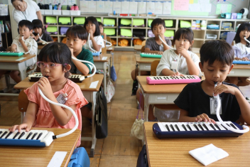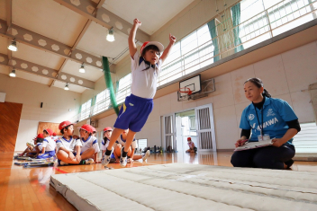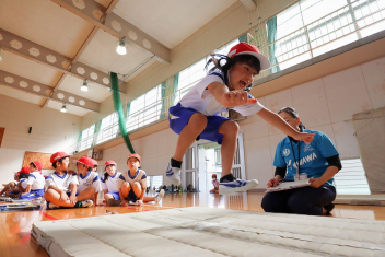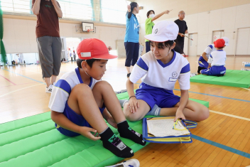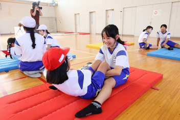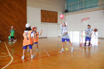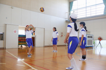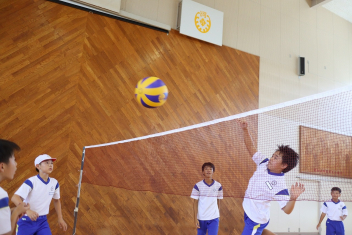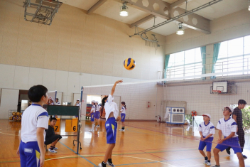 6年生が体育のソフトバレーボールを頑張っていました。難しいトスのところでボールを持っていいというルールで行っていました。何回かラリーが続くと盛り上がりますね。