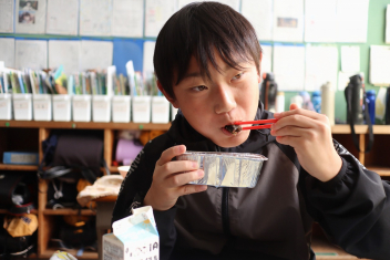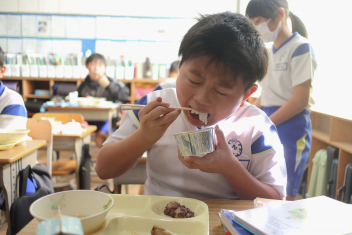 本日朝の読み聞かせの様子です。おにぎりの話を聞いていたら、おにぎり食べたくなってしまいました。関西弁の絵本であたたかみのある作品でしたね。