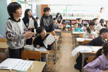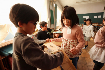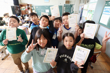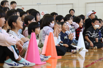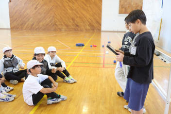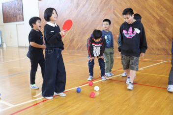昼休みには4年生がボッチャの体験イベントを行いました。今日は5年生がゲストです。盛り上がっていましたね。