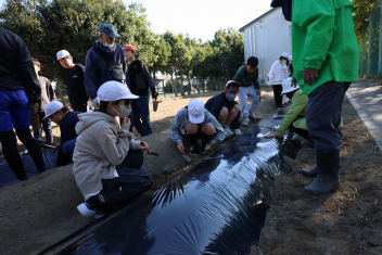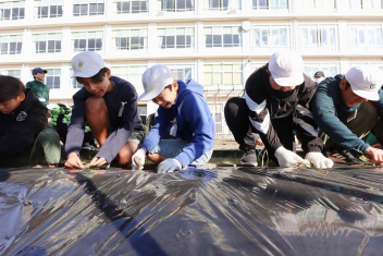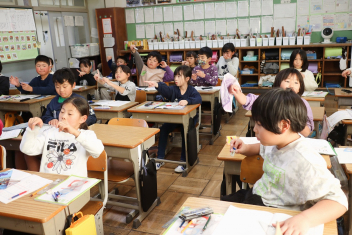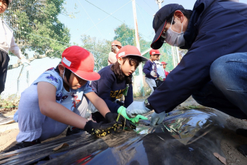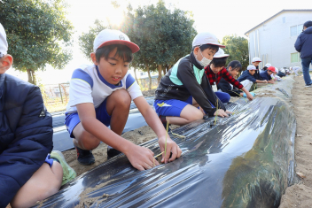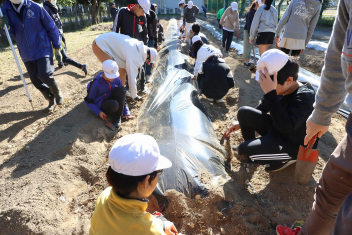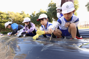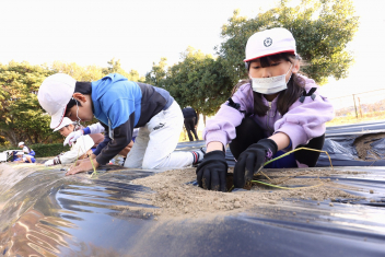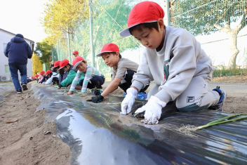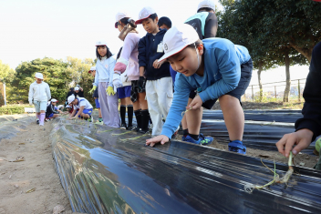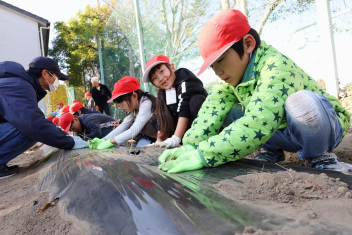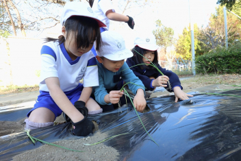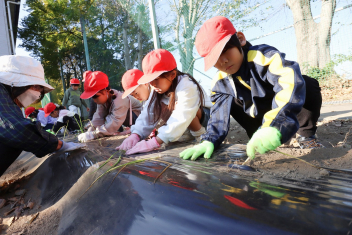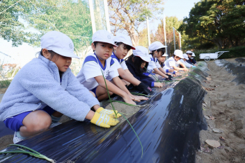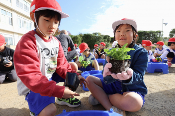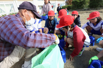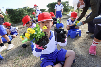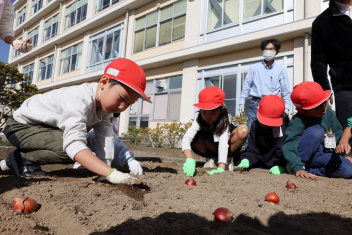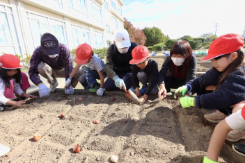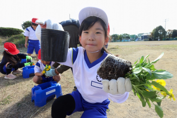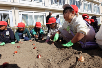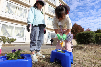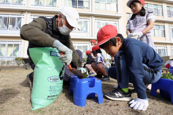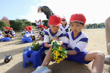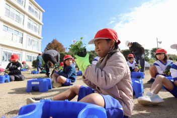 1年生がプランターにビオラやチューリップを植えました。地域のボランティアさんに上手な植え方を教えていただき、みんなきれいに寄せ植えをすることができましたね。成長が楽しみです。