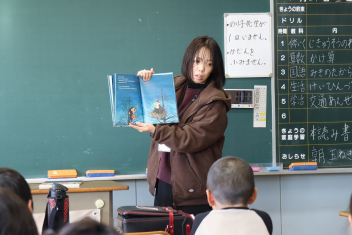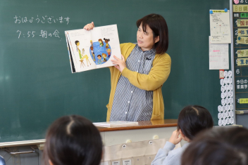 朝の読み聞かせは外国のお話が多かったですね。中には全編英語の絵本もありました。子供たちも夢中になって聴いていました。