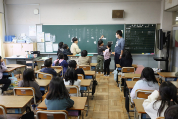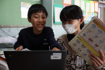 6年生が学期末のお楽しみ会の一環でバレーボールを楽しんでいました。お楽しみ会で何をするかをチャートと呼ばれる思考ツールを使って話し合い、いくつかの実行計画を立てたそうです。明日は何を実行するのでしょう。楽しみです。