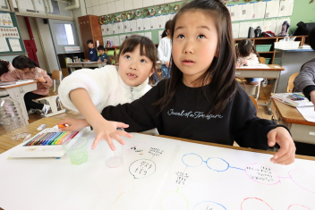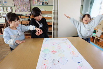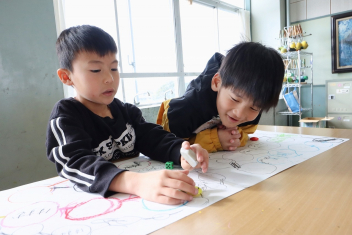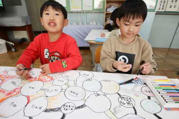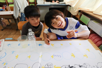 1年生はすごろく作りを楽しんでいました。ゴール直前の「スタートへもどる」が流行していました。楽しく遊べそうですね。