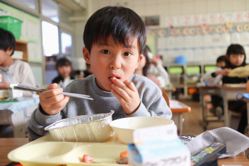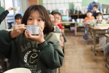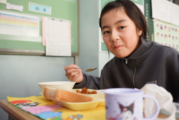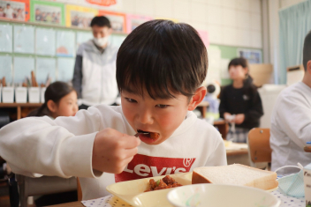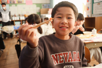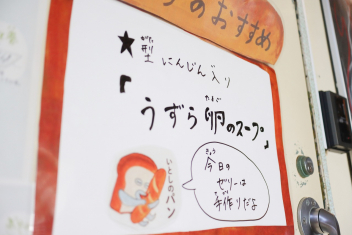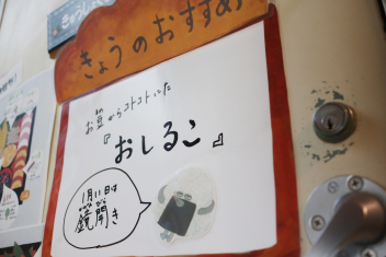 1月から給食室の入り口に掲示板ができました。登校したら「今日のおすすめは何かな?」と思って見てください。
