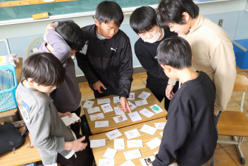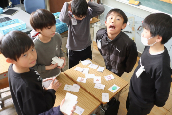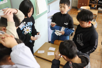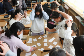 4年生は国語の時間に冬の楽しみを題材にした俳句を作っていました。「かるたにしたい」という子供たちの意見で、急きょかるたづくりを行うようです。完成したかるたで遊ぶのがが楽しみですね。