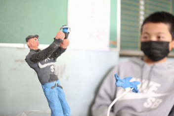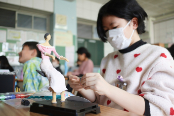 6年生は紙粘土の作品が出来上がってきました。細部までこだわった作品が多いですね。