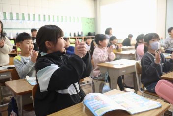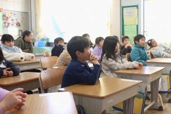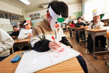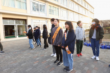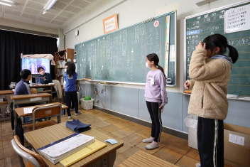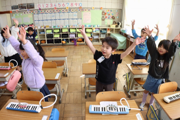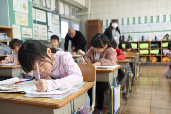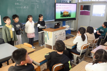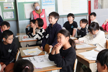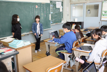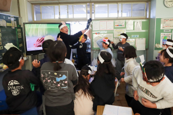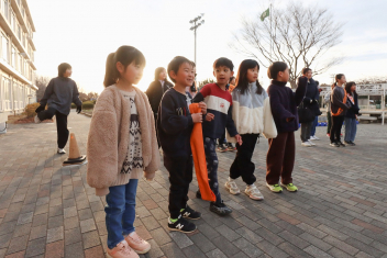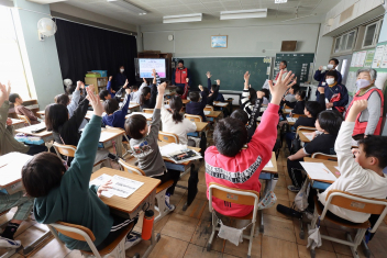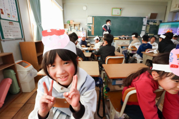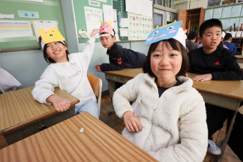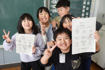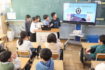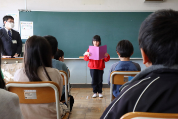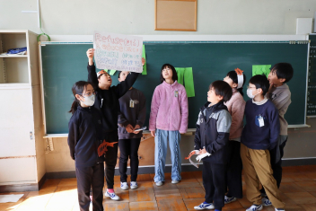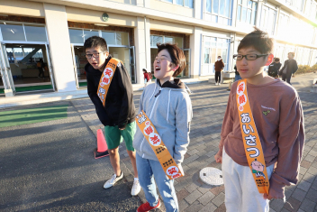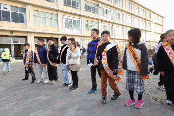 計画委員会のあいさつ運動参加イベントを行いました。今日は1,3,5年生が参加できる日です。オレンジのたすきを掛け元気なあいさつをしてくれた皆さんありがとう。