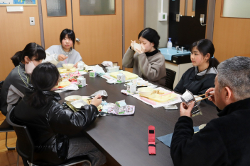できあがった作品を囲んで和やかに話す様子が印象的でした。